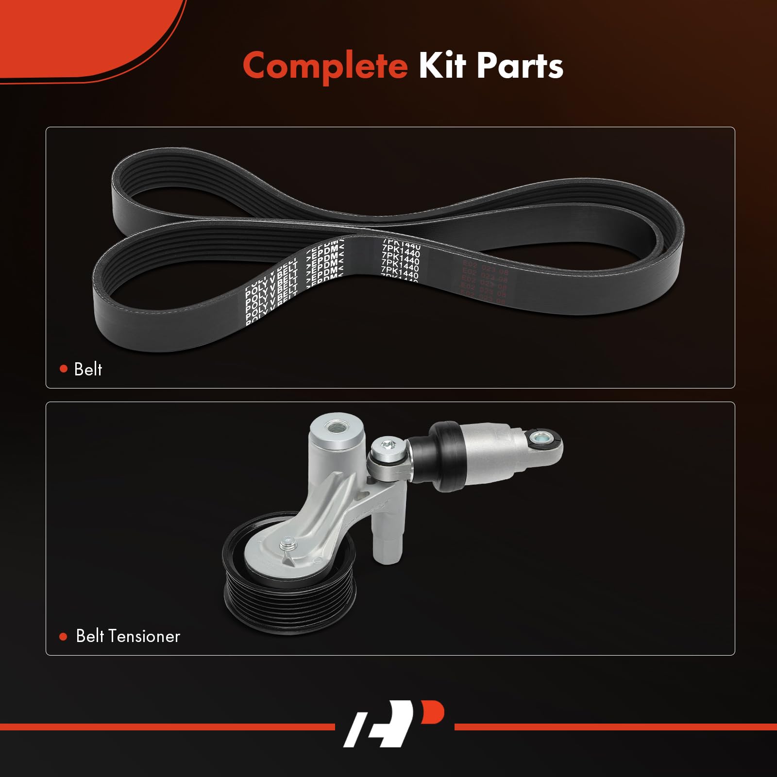 - [Kit Parts Included]: ① 1x Serpentine Belt; ② 1x Belt Tensioner
