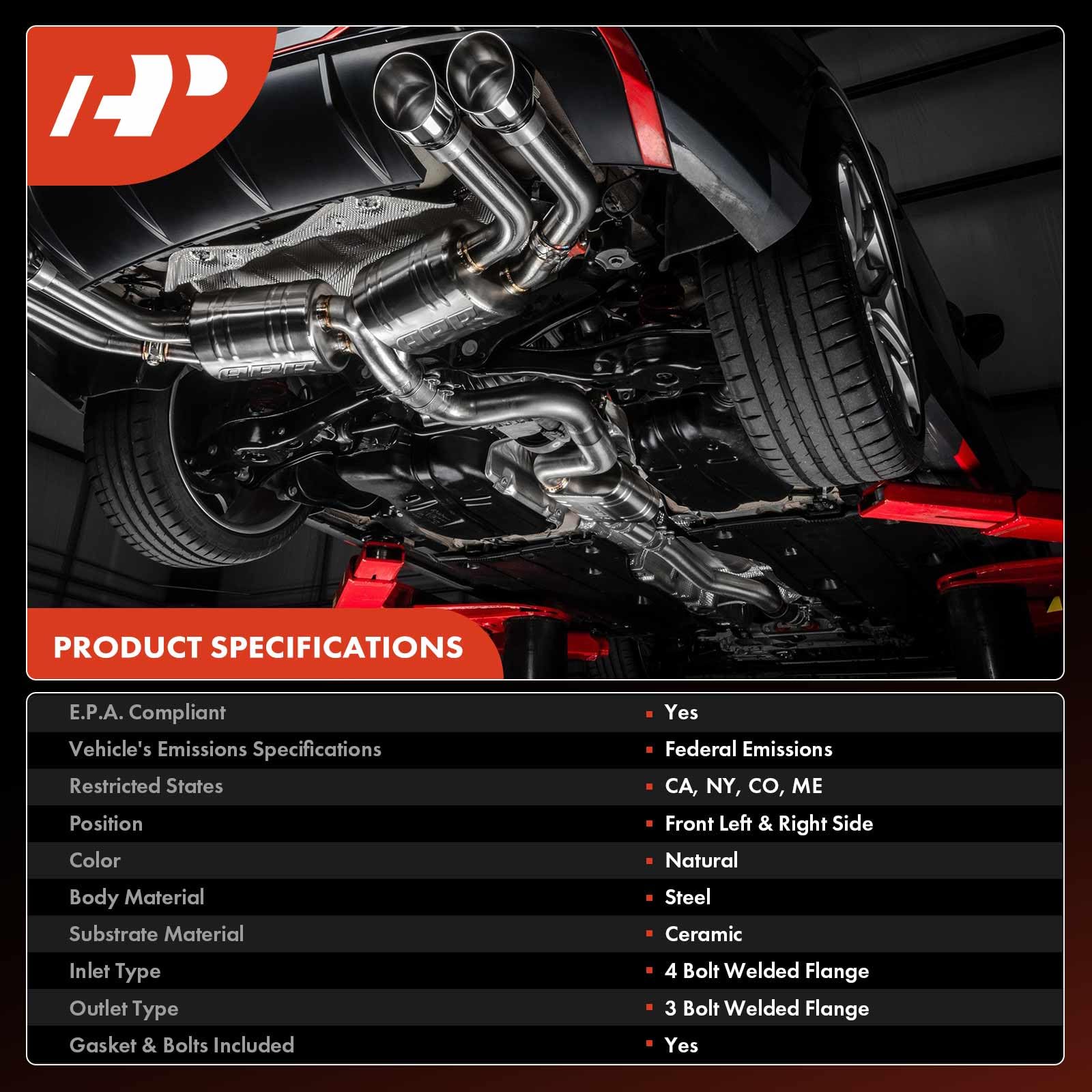 - [E.P.A Compliant]: EPA-compliant catalytic converters cannot be sold or installed in California and Colorado and, under certain circumstances, in Maine and New York. Check your vehicle's Emission Control Information Label and your state's aftermarket converter regulations to select the proper catalytic converter