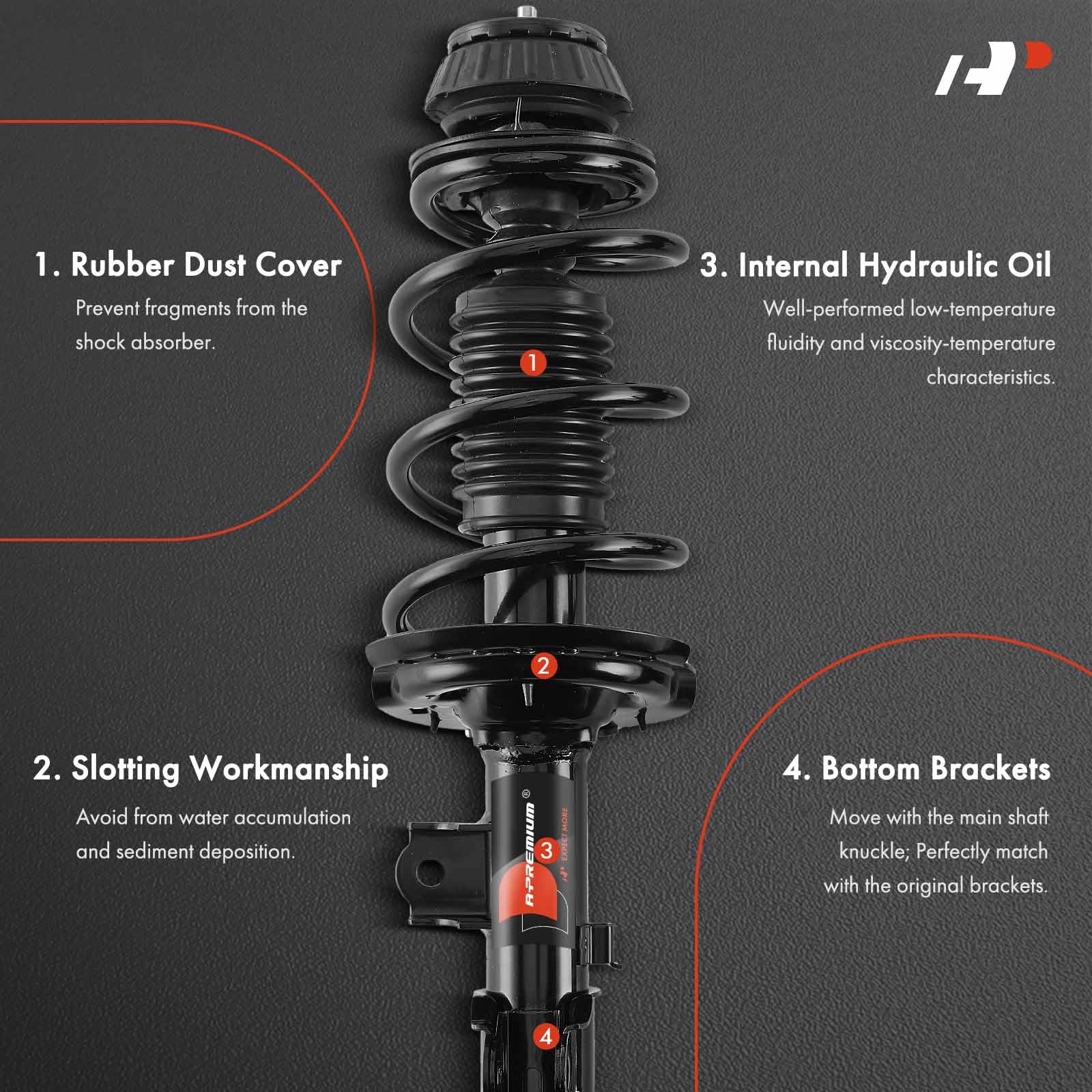 - [Buy with Confidence]: A-Premium offers a one-year unlimited-mileage guarantee on our meticulously crafted suspension shock strut assembly. We offer a wide variety of automotive accessory categories, ensuring that you can hit the road with peace of mind.